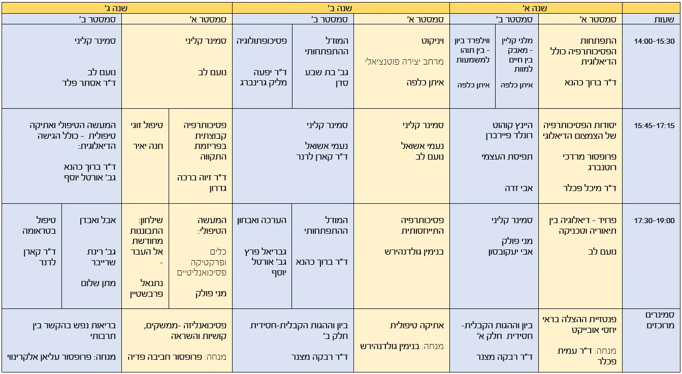 ביה"ס הדיאלוגי לפסיכותרפיה, נועד למטפלים השואפים להרחיב את הידע התיאורטי, יחד עם הבנה טיפולית מעמיקה בתיאוריות פסיכואנליטיות קלאסיות ועכשוויות. התכנית מלמדת באופן מעמיק רחב ומקיף את הזרמים המרכזיים של התיאוריות הדינאמיות הקלאסיות והעכשוויות: פרויד, קליין, ויניקוט, קוהוט, ביון, והגישה האינטר-סובייקטיבית כתוכנית ליבה ואת המפגש עמן דרך הגישה הדיאלוגית של החשיבה היהודית.